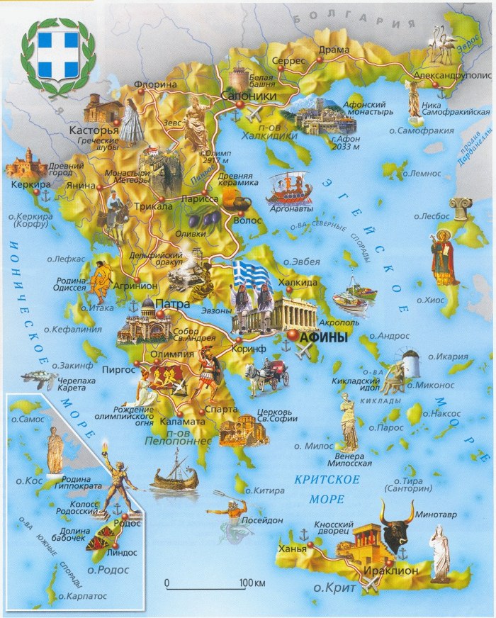 Дополнительная информация! Достопримечательности Греции на карте на русском языке.